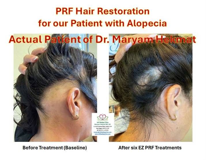 There are a number of ways to help restore thinning hair or hair loss. Supplements (Nutrafol), laser cap treatments (Revian Red), PRP (Platelet Rich Plasma), and Exosomes (Extracellular Vesicles/Growth Factors) therapies.